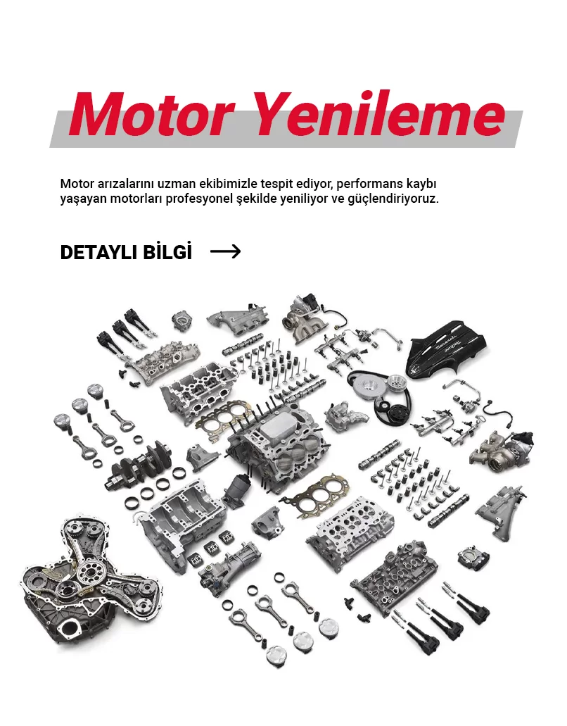 Motor arızalarını uzman ekibimizle tespit ediyor, performans kaybı yaşayan motorları profesyonel şekilde yeniliyor ve güçlendiriyoruz.